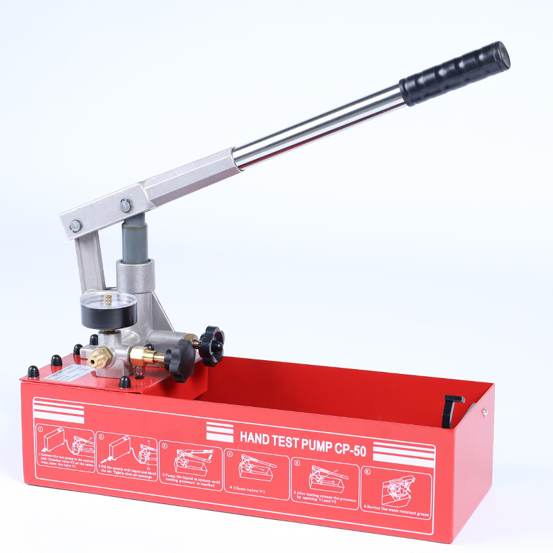 Ручной опрессовочный насос CP-50 предназначен для гидроиспытаний и проверки герметичности контуров отопления, кондиционирования, водоснабжения и других трубопроводов. В качестве рабочей среды допускаются вода или минеральное масло.